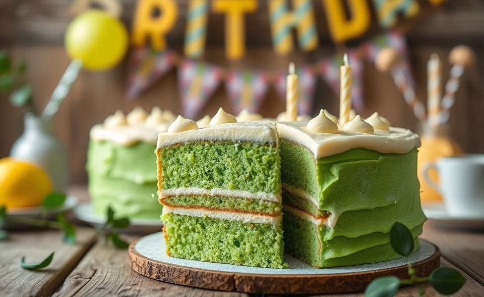 Quando pensamos em bolos de aniversário verde, normalmente imaginamos algo artificial, mas esta receita vai te surpreender. Utilizo espinafre fresco para criar uma cor naturalmente vibrante, combinado com o sabor cítrico do limão que corta perfeitamente a doçura.