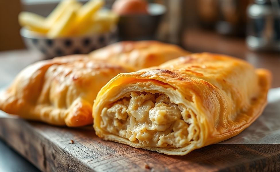 O que torna esta receita especial é o equilíbrio entre a massa folhada caseira e o recheio bem temperado, que derrete na boca. Cada mordida é uma experiência de sabores autênticos que remetem à cozinha tradicional brasileira.