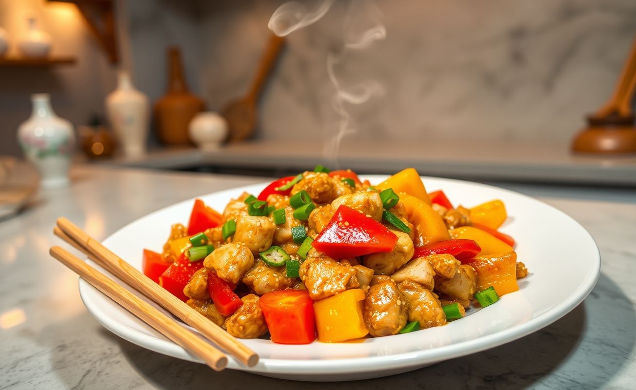 Preparei essa versão com carinho para ser fácil de fazer, mas com resultado de restaurante. O contraste entre o crocante dos legumes e a maciez do frango é simplesmente irresistível.